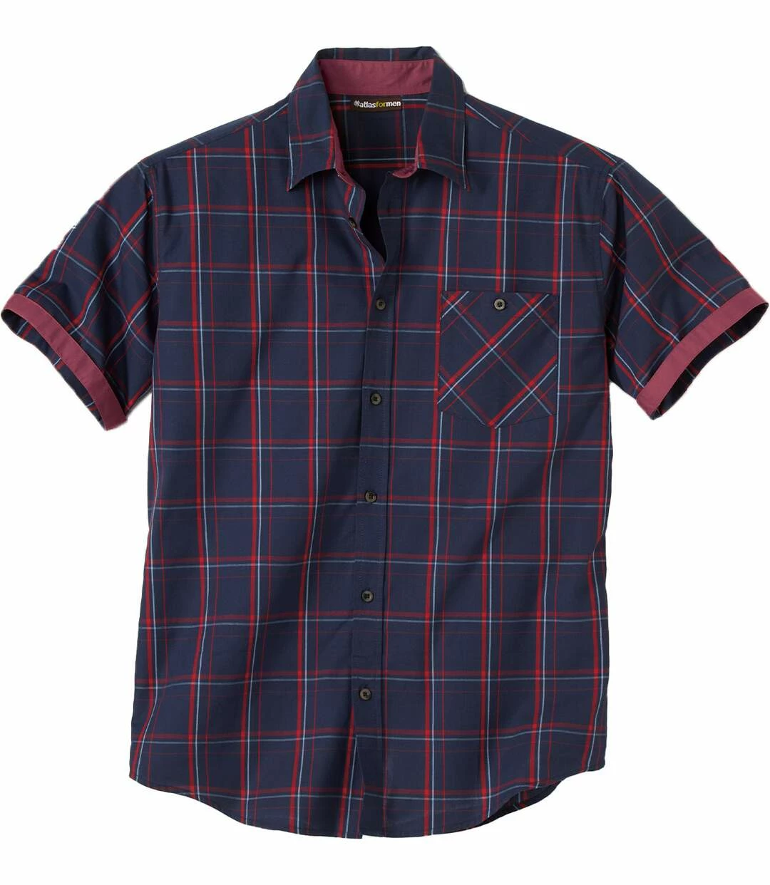 Kariertes Popelinhemd: Freuen Sie sich auf die originellen Details dieses kurzärmeligen Popelinhemds mit Webkaros (ca. 110 g/m²). Es hat 1 geknöpfte Brusttasche. Die Krageninnenseite und die Ärmelrevers sind in Kontrastfarbe gehalten. Je nachdem, ob Sie die Revers umschlagen, ist Ihr Look elegant oder lässig – Sie entscheiden nach Lust und Laune. Weiter Schnitt mit 2 Bewegungsfalten im Rücken und abgerundetem Saum. Kentkragen. 100% Baumwolle. Rückenlänge bei Größe L: ca. 80 cm. Maschinenwaschbar bei 30°. Farben: Dunkelblau, Rot / Art.-Nr.: J8147