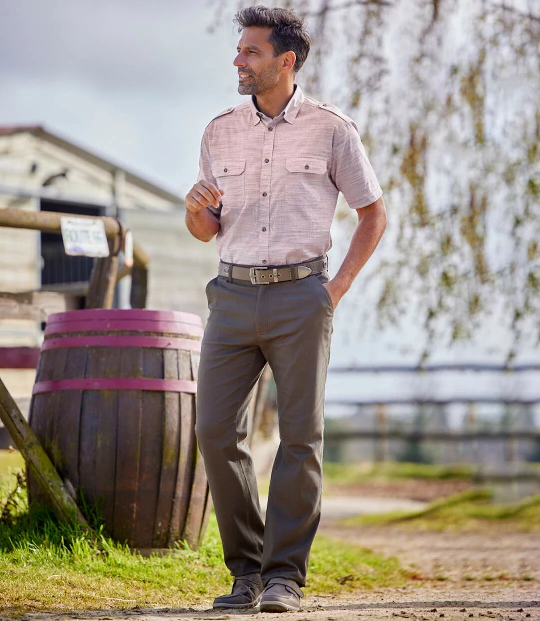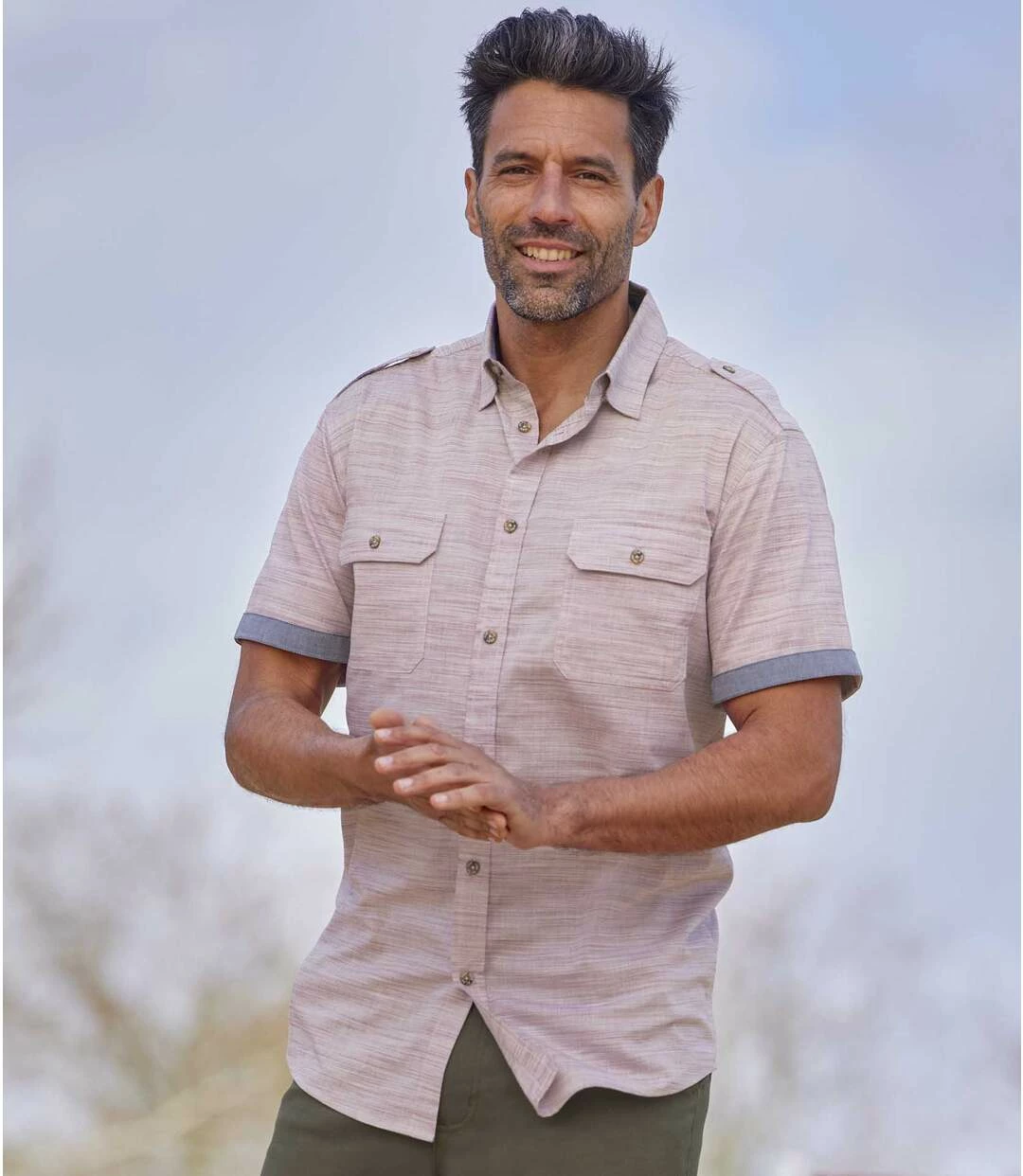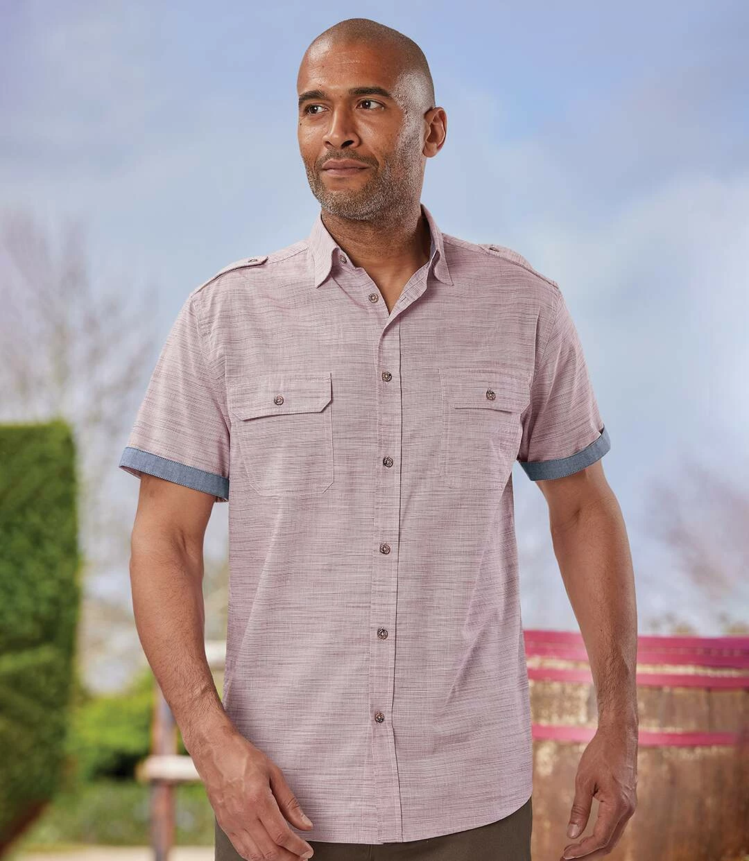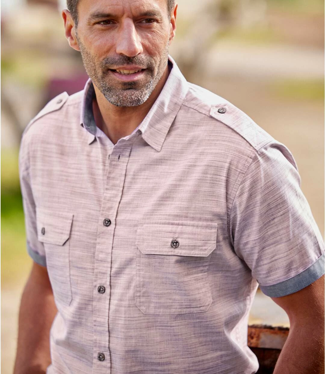Kurzärmeliges Hemd aus geflammtem Popelin: Bei diesem Modell fällt die dezente Streifenoptik des weichen Popelin (ca. 110 g/m²) sofort ins Auge! Markante Akzente verleihen dem Hemd seinen besonderen Look. Die Revers in Chambray können Sie sichtbar tragen oder umkrempeln, je nach Laune und Anlass. Die geknöpften Schulterklappen erinnern an den Stil von Pilotenhemden. Geknöpfte Schulterklappen, Rückenpasse mit 2 Bewegungsfalten, abgerundeter Saum. Rückenlänge bei Größe L: ca. 80 cm. Maschinenwaschbar bei 30°. Farbe: Rosa.