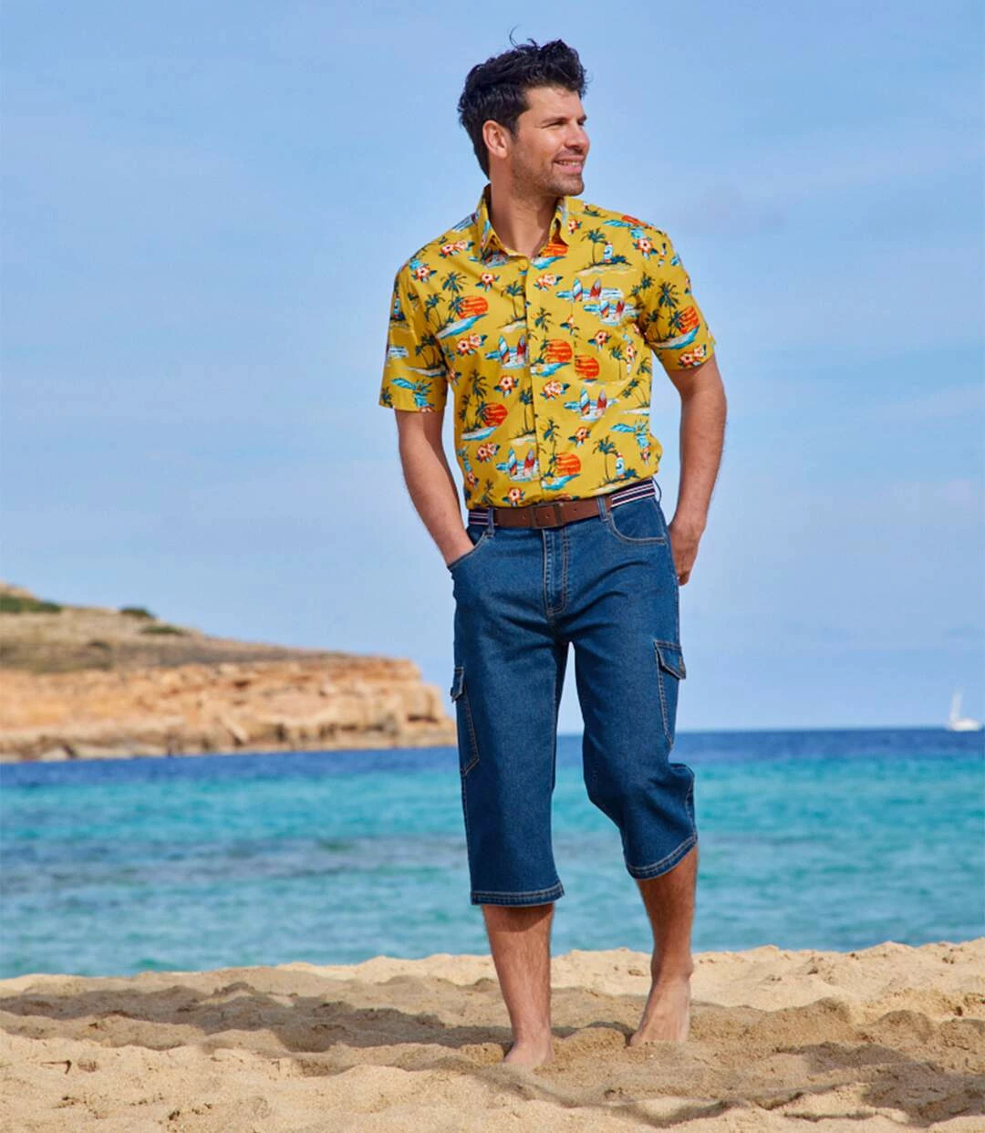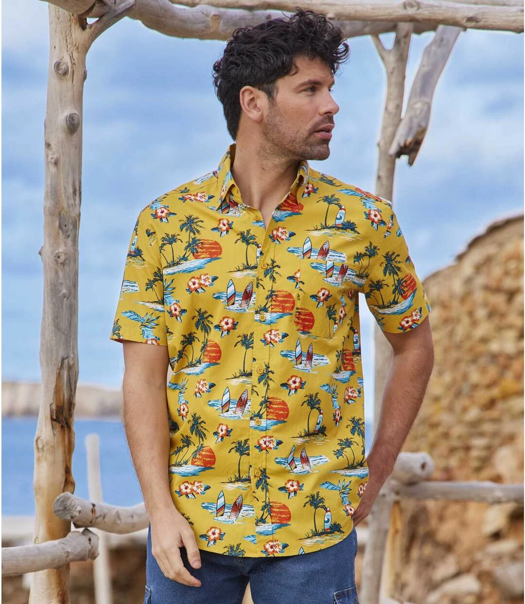 Kurzärmeliges Popelinhemd Malibu: Der Aufdruck dieses Hawaii-Hemds mit dem exotischen Printmotiv passt perfekt zum Malibu-Strand! Das leichte und bequeme Modell wird aus herrlichem Popelin (ca. 110 g/m²) gefertigt. Weiter Schnitt mit 2 Bewegungsfalten im Rücken und abgerundetem Saum. Einwandfreie Verarbeitung: Kentkragen, 1 aufgesetzte Brusttasche. Rückenlänge bei Größe L: ca. 80 cm. Maschinenwaschbar bei 30°. Auf Links bügeln. Farbe: Gelb mit Motivdruck.