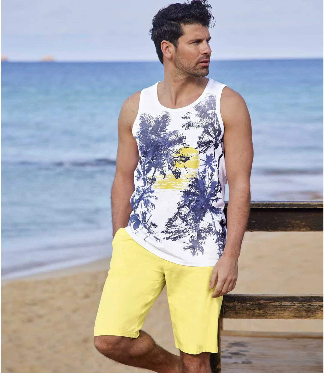 Lässige Bermuda Miami aus Canvas: Diese leuchtend gelbe Bermuda aus leichtem Canvas (ca. 160 g/m²) vervollständigt Ihr lässiges Sommer-Outfit! Das praktische Modell hat einen Elastikbund mit Verstellkordel sowie 2 seitliche Einstecktaschen. Schrittlänge bei Größe L: ca. 29 cm, Beinweite: ca. 29 cm. Maschinenwaschbar bei 30°. Farbe: Gelb.