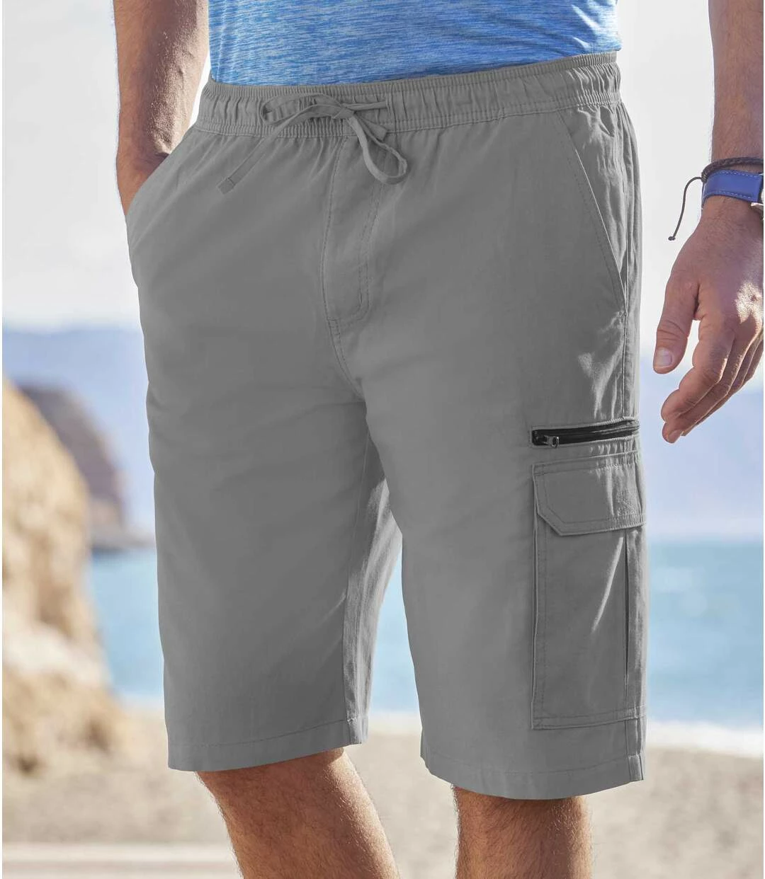Lässige Cargo-Bermuda Bonifacio: Diese superbequeme Sommer-Bermuda wird aus weichem und strapazierfähigem Microcanvas (ca. 160 g/m²) gefertigt. Der Elastikbund kann mit der außenliegenden Kordel angepasst werden. Genießen Sie den lässigen Look mit 4 praktischen Taschen: 2 Einstecktaschen vorne und 1 Beintasche mit Klettklappe, die mit einer Reißverschluss-Tasche kombiniert ist. Mit Ziernaht angedeuteter Eingriff. 100% Baumwolle. Schrittlänge bei Größe L: ca. 29 cm, Beinweite: ca. 29 cm. Maschinenwaschbar bei 30°. Farbe: Grau