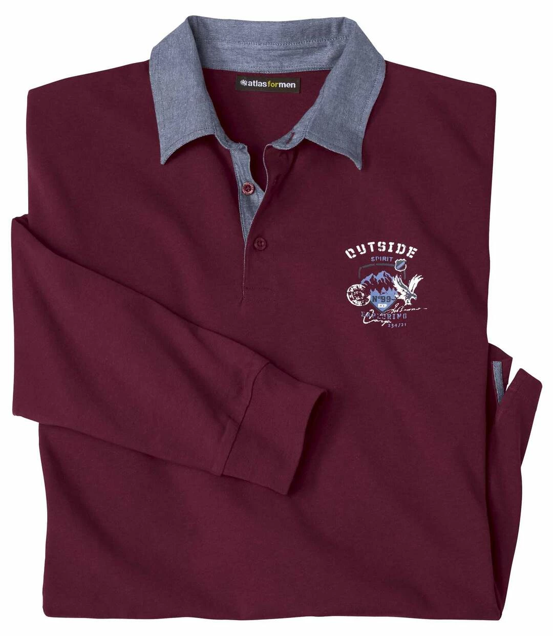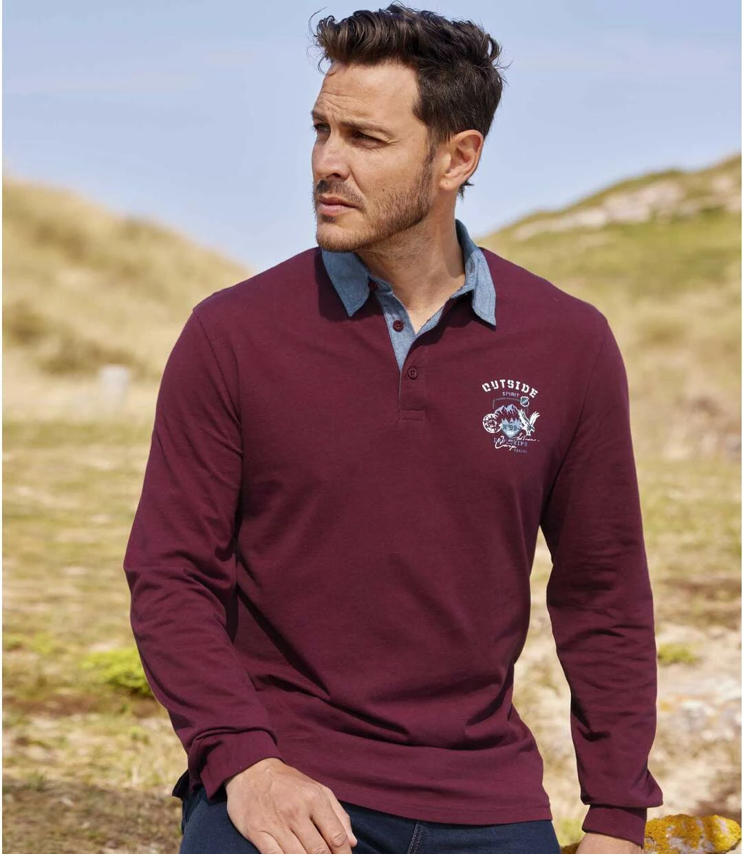 Langärmeliges Poloshirt Outside mit Chambray-Details: Bequemer Schnitt und elegante Details sind die Merkmale dieses langärmeligen Poloshirts! Es wird aus weicher und anschmiegsamer Baumwolle (ca. 180 g/m²) gefertigt. Zusätzlich sorgen ein Brustaufdruck und Details in Chambray für den feinen Unterschied: Kentkragen, Unterseite der Knopfleiste, Verstärkungen der Seitenschlitze. Den perfekten Sitz garantieren Rippbündchen an den Ärmeln sowie Seitenschlitze am Saum. Gerader Saum mit Doppelnähten. Knöpfe Ton in Ton. 100% Baumwolle. Rückenlänge bei Größe L: ca. 74 cm. Maschinenwaschbar bei 30°. Farben: Pflaume, Details in Chambray – Art.-Nr.: K5125