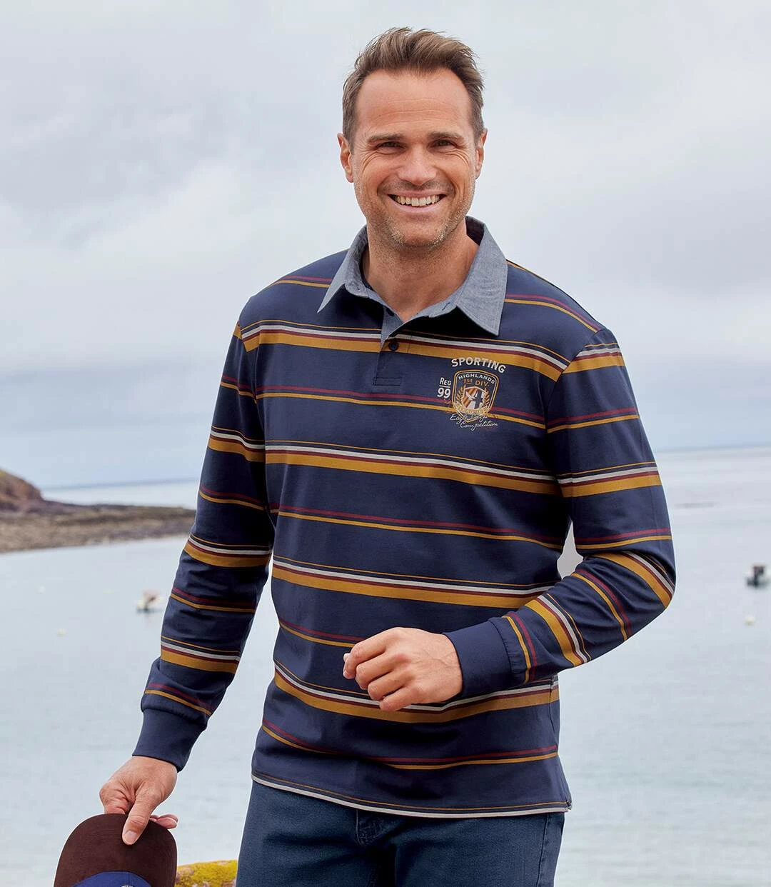 Langärmeliges Poloshirt mit Streifen: Dieses langärmelige Poloshirt gefällt vor allem Sportfans! Der hochwertige gestreifte Jersey (ca. 180 g/m²) garantiert perfekte Passform. Der Kragen, die Unterseite der Knopfl eiste sowie die Verstärkungen der Seitenschlitze sind mit Chambray abgesetzt. Der exklusive Brustaufdruck sieht aus wie das Abzeichen eines Sportclubs. Rippbündchen an den Ärmeln für perfekten Sitz. Nackenband. Saum mit Doppelnähten. 100% Baumwolle. Rückenlänge bei Größe L: ca. 74 cm. Maschinenwaschbar bei 30°. Farben: Streifen in Dunkelblau, Ocker, Bordeaux, Natur – Art.-Nr.: G6154