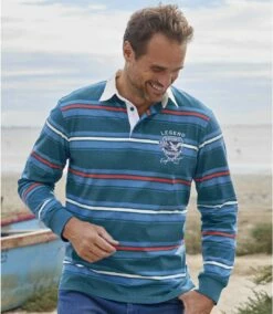 Poloshirt Eagle League: Mit diesem Poloshirt aus herrlichem Jersey (ca. 180 g/m²) pflegen Sie einen sportiven eleganten Look. Der Kragen und die Unterseite der Knopfleiste aus Twill in Kontrastfarbe sowie der Brustaufdruck setzen markante Akzente. Weiter und bequemer Schnitt mit verstärkten Seitenschlitzen, die für Tragekomfort sorgen. Sorgfältige Verarbeitung: halbmondförmiger Nackeneinsatz, Rippbündchen an den Ärmeln, Saum mit Doppelnähten. 100% Baumwolle. Rückenlänge bei Größe L: ca. 74 cm. Maschinen-waschbar bei 30°. Auf Links bügeln. Farben: Dunkelblau, Streifen in Blau, Rot und Natur – Art.-Nr.: L2114