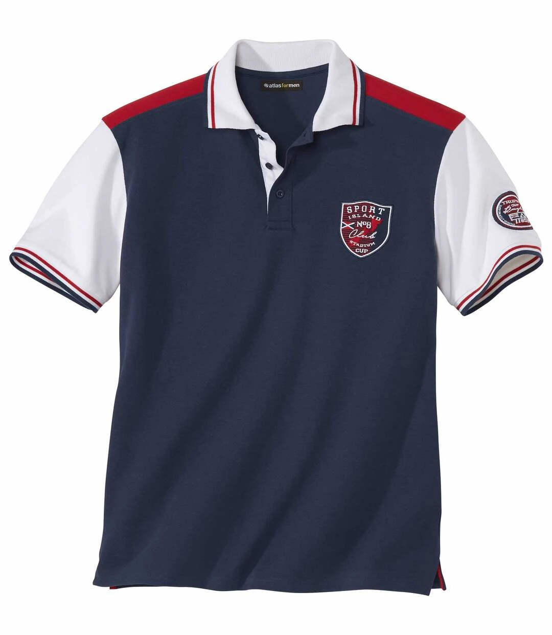 Poloshirt im Rugby-Stil: Dieses kurzärmelige Poloshirt aus strapazierfähiger Jersey-Qualität (ca. 160 g/m²) begeistert durch die Kombination von sportivem Chic mit hochwertigen Details. Inspiriert vom Stil der Rugby-Shirts zeigt es Kontrastdetails, die ihm seinen besonderen Stil verleihen: gestreifte Rippbündchen an den Ärmeln und am Kragen, Unterseite der Knopfleiste, Dekorstreifen an den Schultern. Weiter Schnitt mit verstärkten Seitenschlitzen. Nackenband. Stickereien auf Brust und Ärmeln. Verarbeitung mit Doppelnähten. 100% Baumwolle. Rückenlänge bei Größe L: ca. 74 cm. Maschinenwaschbar bei 30°. Farben: Dunkelblau, Details in Weiß und Rot – Art.-Nr.: K2152