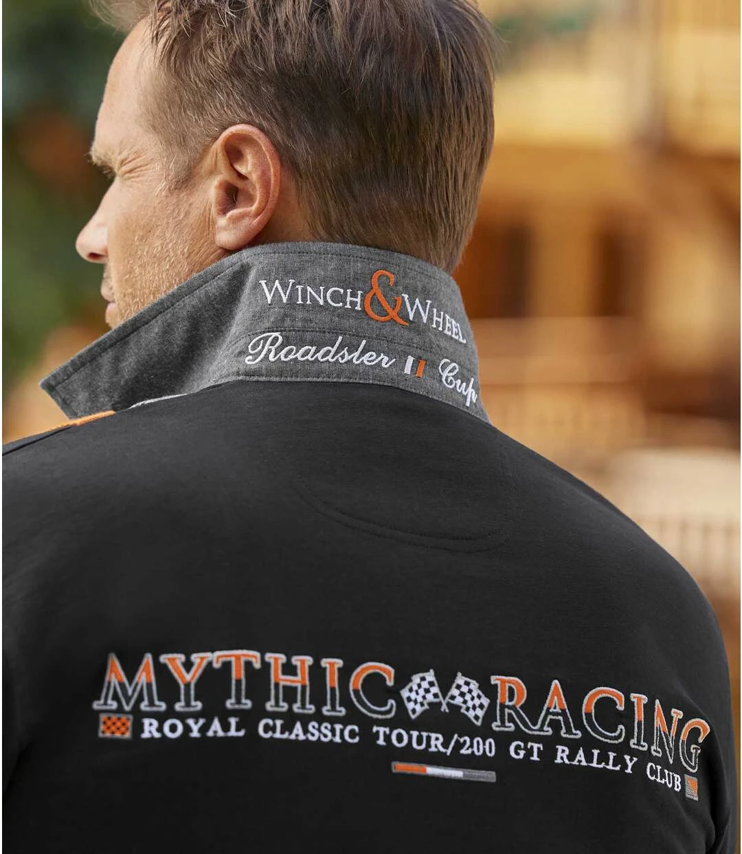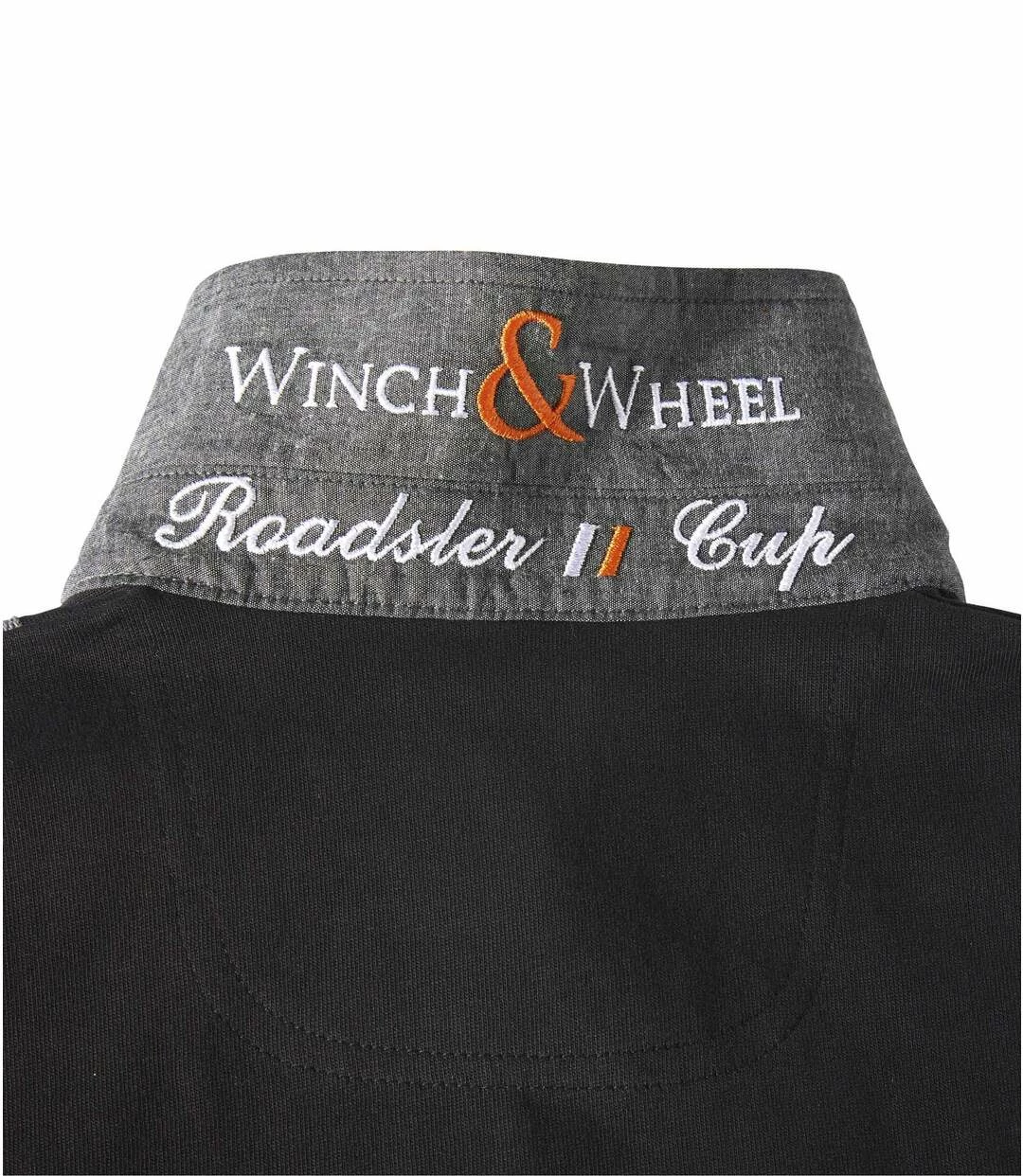 Poloshirt Mythic Racing: Dank vieler optischer Akzente verleiht Ihnen dieses Poloshirt den Look eines Rennsportlers! Das Modell aus dicker, hochwertiger Baumwolle (ca. 290 g/m²) hat einen Twill-Kragen und graue Chambray-Details (Unterseite der Knopfleiste, Rückseite des Kragens) sowie effektvolle Ripsbänder in Grau und Orange (dekorative Bänder vorne, Nackenband, Dekorstreifen auf der Unterseite der Knopfleiste und an den Seitenschlitzen). Aber die besonderen optischen Highlights sind wie bei allen Modellen von Winch and Wheel die exklusiven Wappen und Stickereien (Vorder-/Rückseite, Unterseite des Kragens), die das Poloshirt aus der Masse hervorheben. Gedoppelte Rippbündchen mit 2 schmalen Dekorsteifen in Kontrastfarben. Schwarze Knöpfe mit W and W-Gravur. Rückenlänge bei Größe L: ca. 74 cm. Maschinenwaschbar bei 30°. Farben: Schwarz, Details in Orange und Grau.