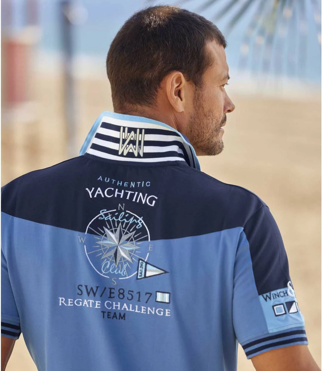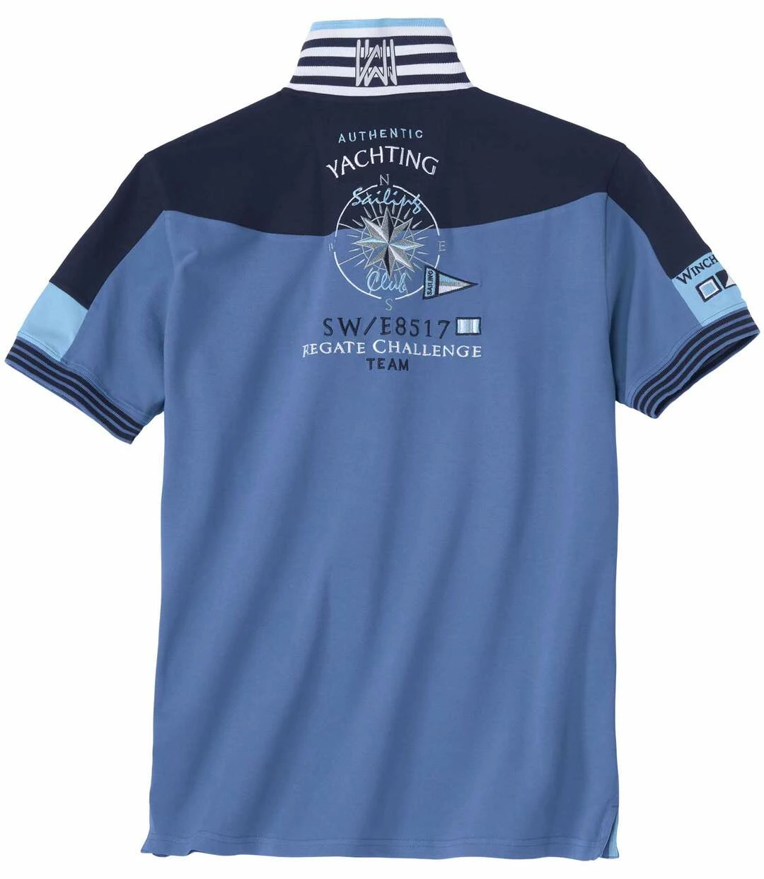 Poloshirt Nautic Coast von Winch and Wheel: Wenn Sie den Segelsport lieben, dann wird Sie dieses kurzärmelige Poloshirt der Marke Winch and Wheel mit seinem einzigartigen Stil und der hochwertigen Verarbeitung begeistern! Die dehnbare Piqué-Qualität (ca. 220 g/m²) verwöhnt mit einwandfreiem Sitz und optimalem Komfort. Getreu dem Markenstil zeigt dieses Modell zahlreiche modische Akzente – Aufdrucke, Stickereien und Webetiketten – auf der Brust, am linken Ärmel und auf dem Rücken. Jedes Detail ist durchdacht und sorgfältig ausgeführt: Rippbündchen mit schmalen Dekorstreifen am Kragen und an den Ärmeln, die Unterseite der Knopfleiste sowie die Verstärkungen der Seitenschlitze sind aus Ripsband in Kontrastfarbe, die gravierten Knöpfe sind mit blauem Garn vernäht etc. Ein Poloshirt mit absolut sportivem Chic! 95% Baumwolle, 5% Elasthan. Rückenlänge bei Größe L: ca. 74 cm. Maschinenwaschbar bei 30°. Farbe: Blau.
