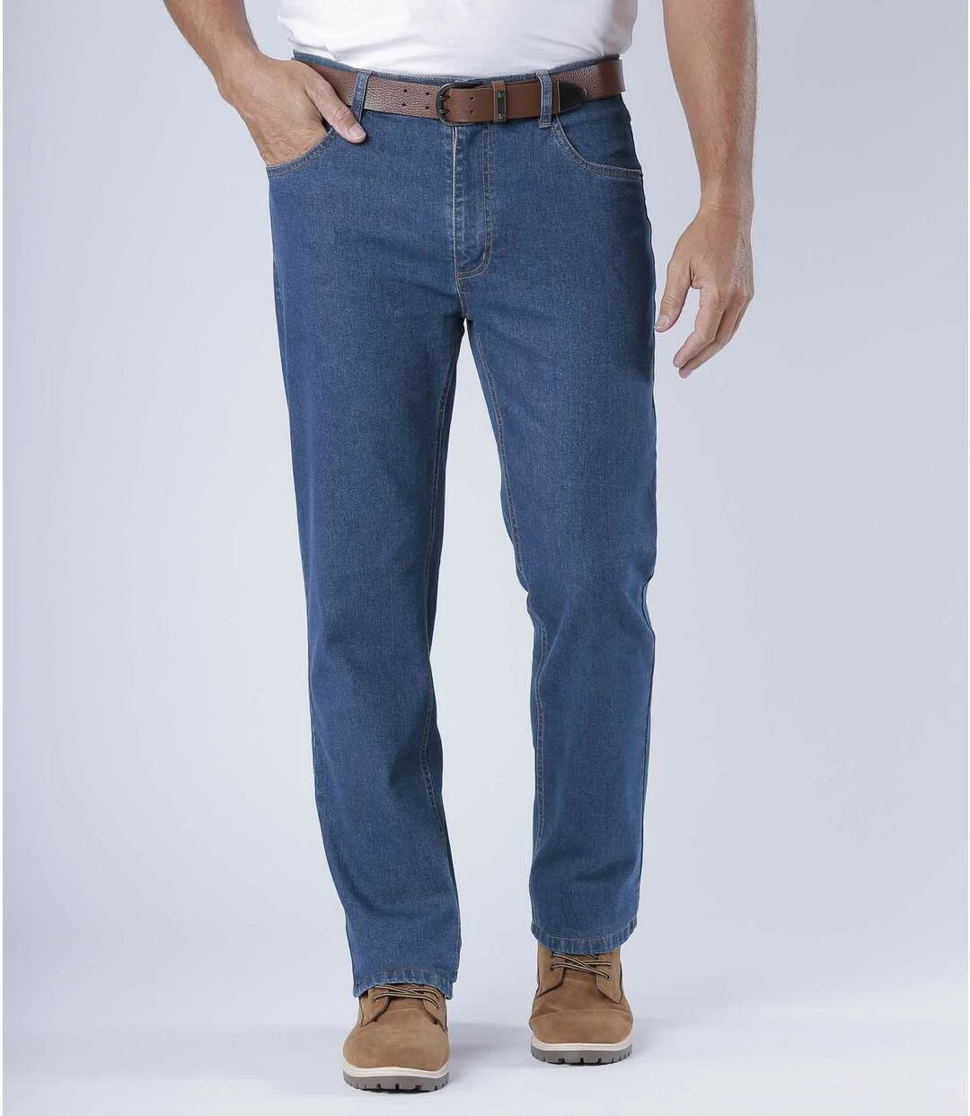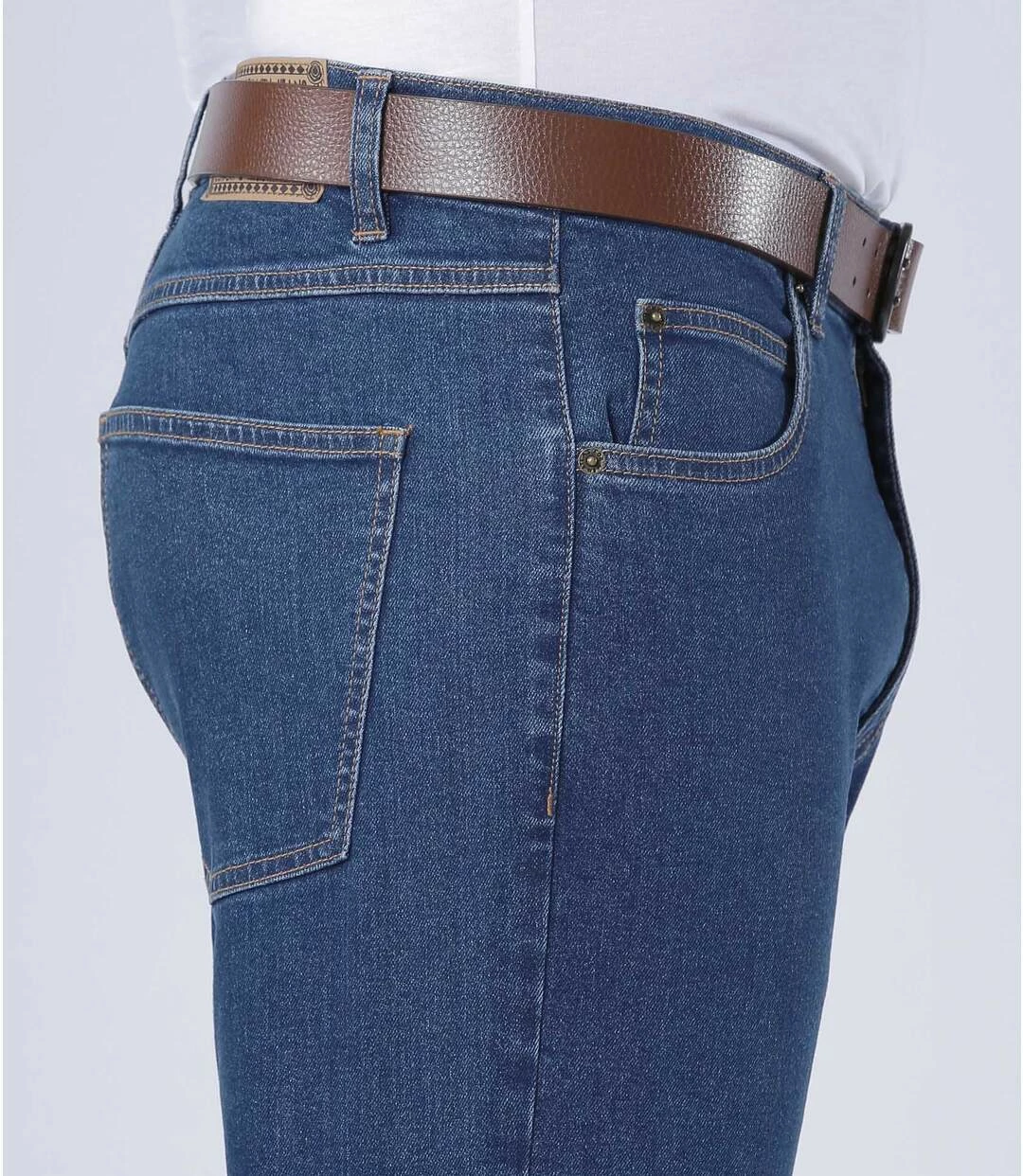 Regular-Jeans mit Stretch-Effekt: Jeder Mann braucht diesen Hosen-Klassiker aus solidem, bequemem, blauem Denim (11 oz). Einwandfreie Verarbeitung: Bund mit Schlaufen, Reißverschluss mit Abschlussknopf aus Metall. 5 Taschen: 2 Einstecktaschen mit Nieten und 1 Münztasche vorne und 2 aufgesetzte Gesäßtaschen. Kontrastnähte. 98% Baumwolle, 2% Elasthan. Schrittlänge bei Größe 50: ca. 86 cm, Fußweite: ca. 21,5 cm. Maschinenwaschbar bei 30°. Farbe: Hellblau – Art.-Nr.: K4147