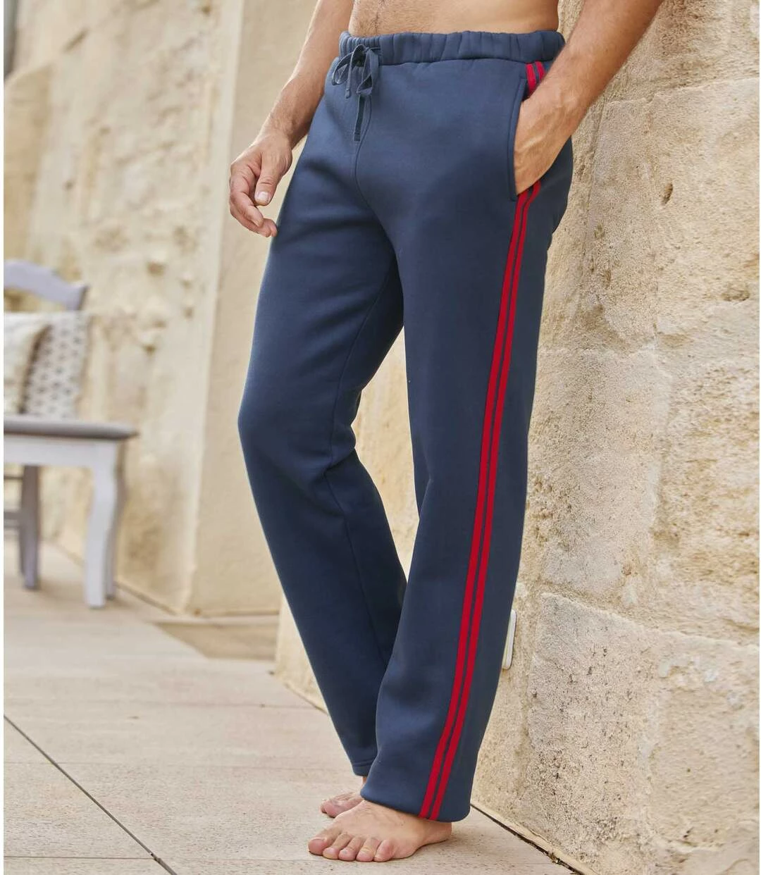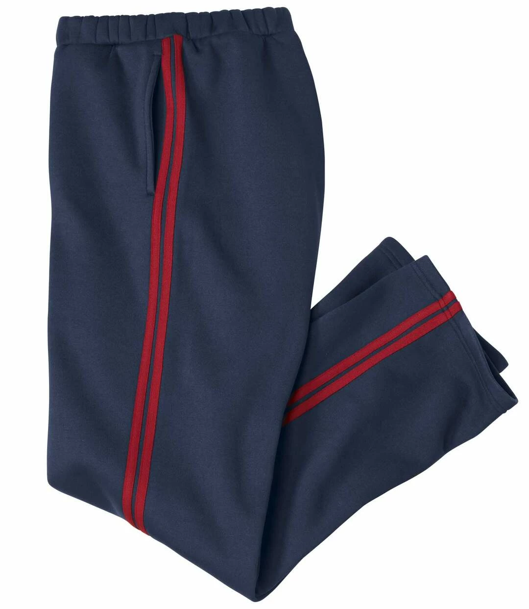 Schlupfhose Entspannung aus Molton: Ob fürs Training oder die Entspannung danach, diese Schlupfhose aus innen angerautem Molton (ca. 265 g/m²) verwöhnt mit Wohlbefinden! Und der Style passt auch: Der rote Doppelstreifen entlang der Seitennaht verleiht dem Modell sportive Dynamik! Die Hose hat einen Elastikbund mit Verstellkordel sowie 2 seitliche Einstecktaschen. Gerader Saum mit Doppelnähten. 100% Polyester. Schrittlänge bei Größe L: ca. 81 cm, Fußweite: ca. 21 cm. Maschinenwaschbar bei 30°. Farben: Dunkelblau, Details in Rot – Art.-Nr.: L1111