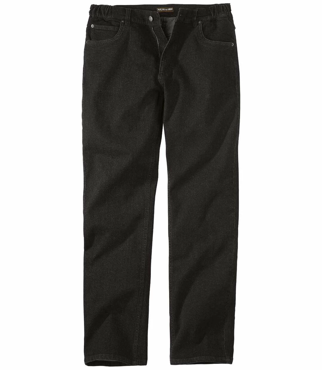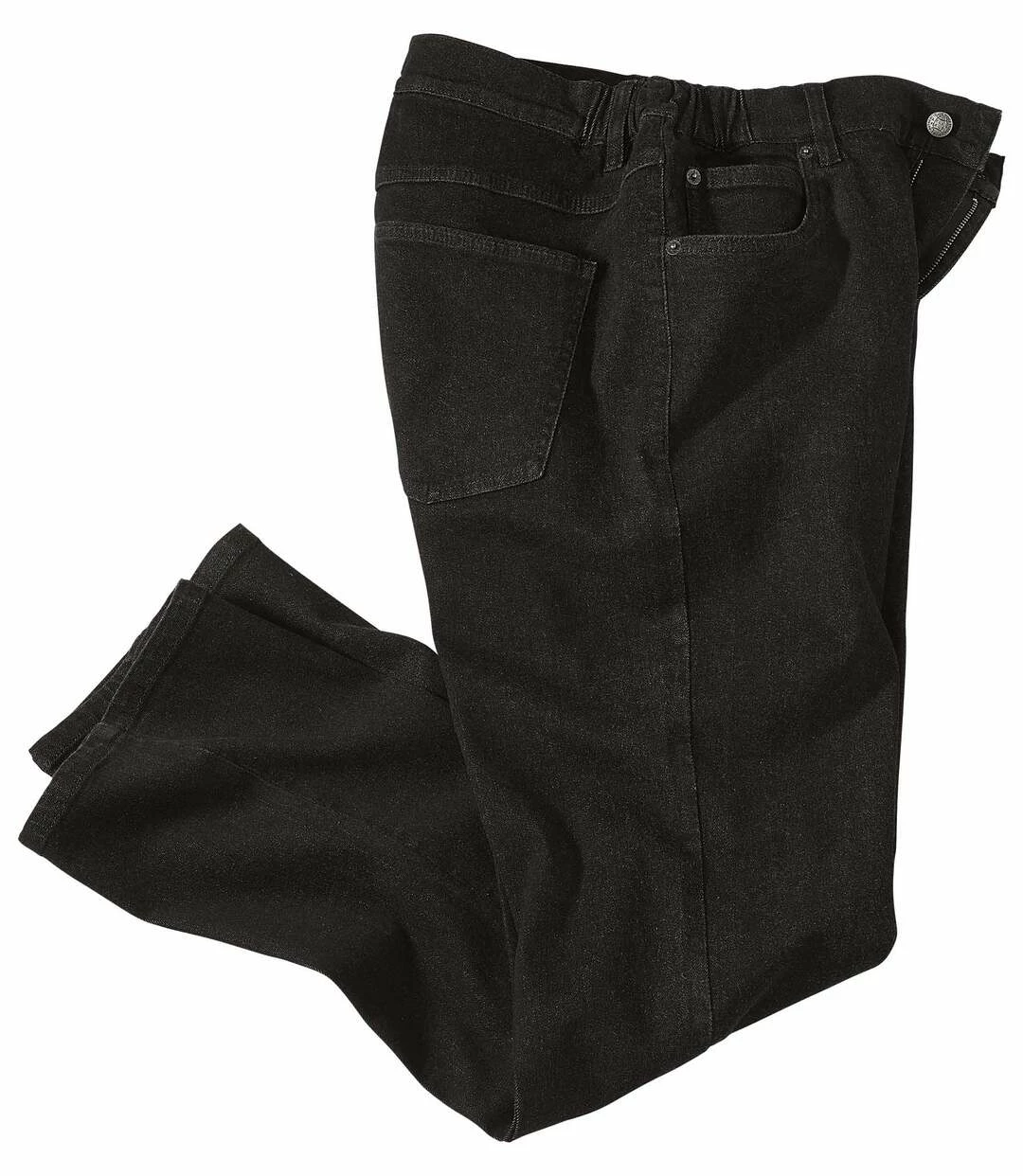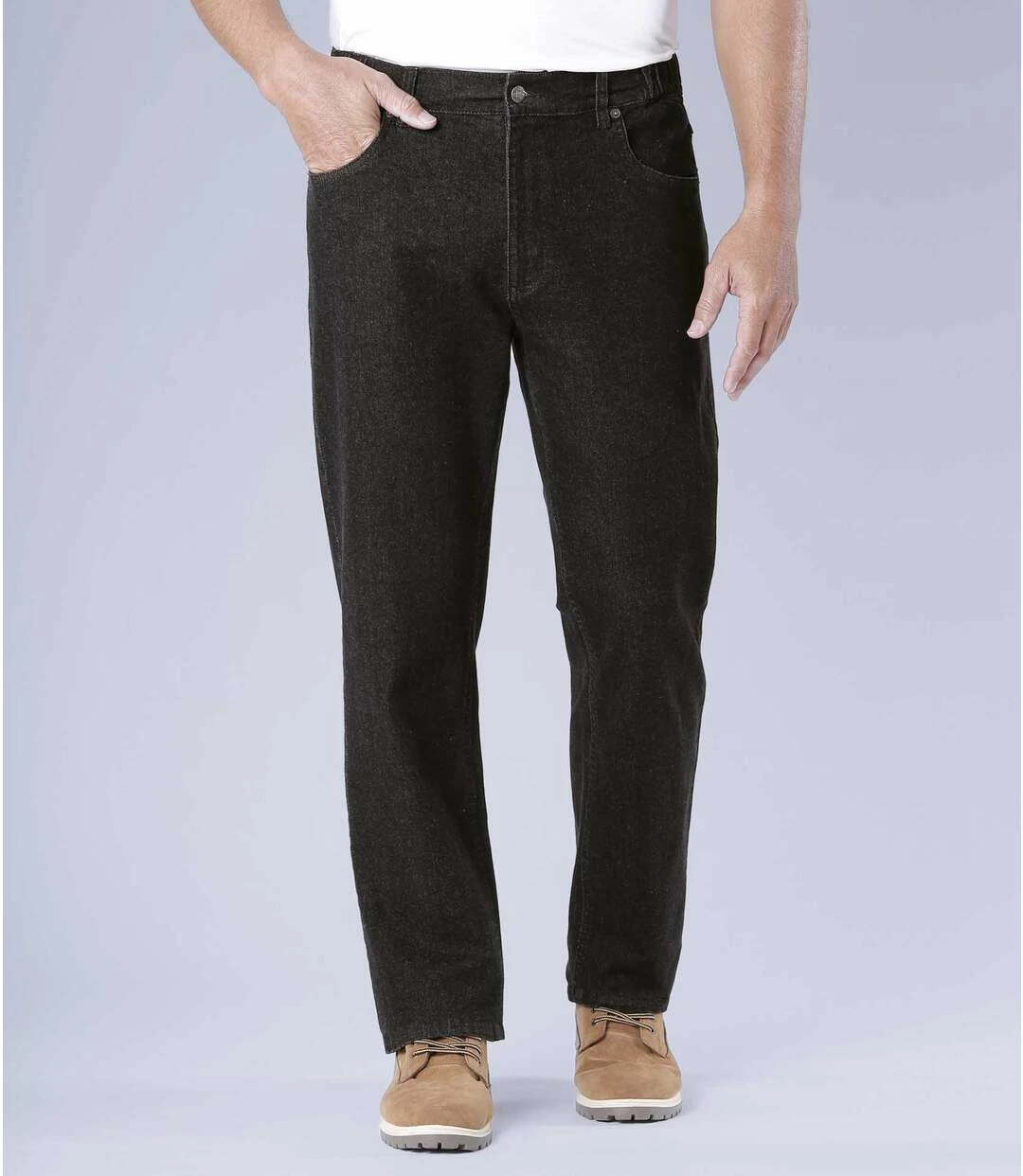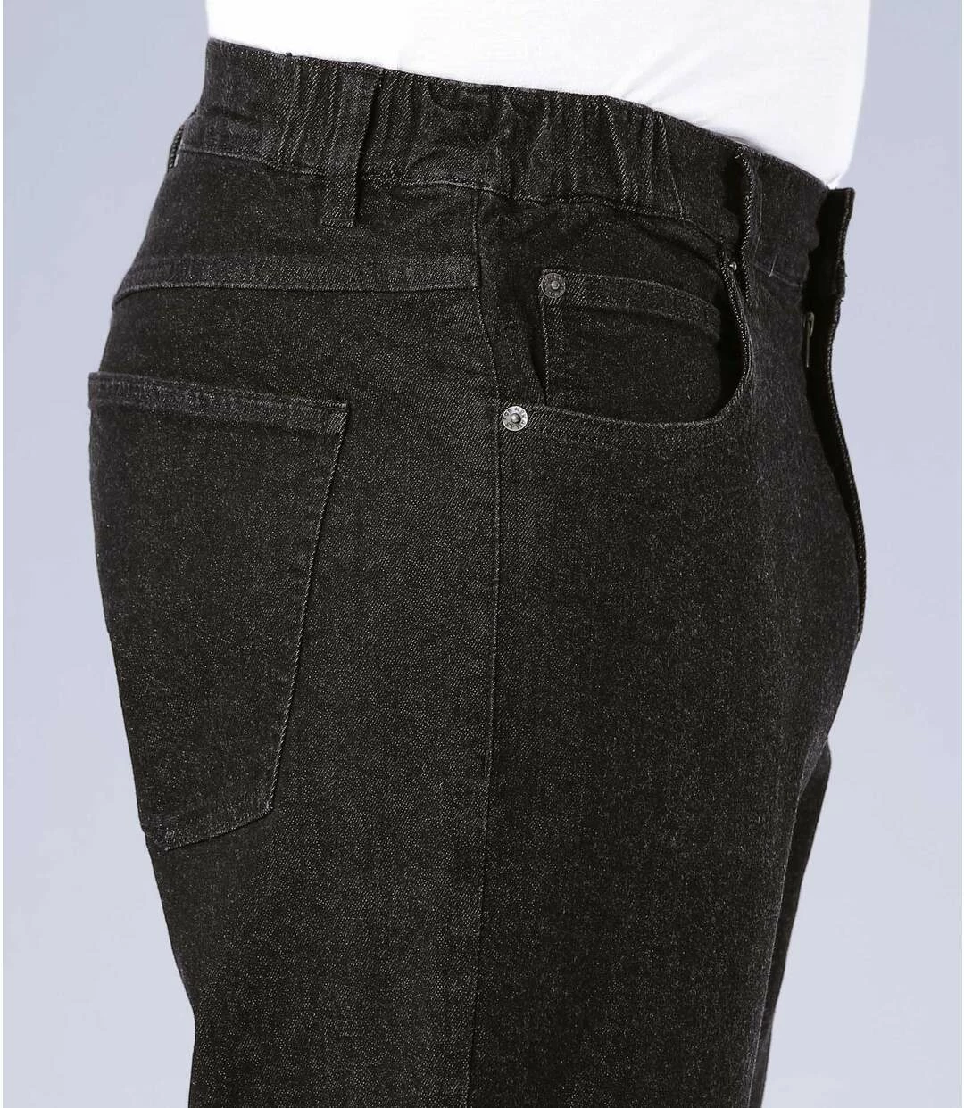 Schwarze Regular-Jeans Stretch Komfort mit Dehneinsätzen: In dieser Jeans genießen Sie maximalen Komfort dank der diskreten seitlichen Dehneinsätze am Bund! Der solide Stretch-Denim (11 oz) ist im klassischen Jeans Stil verarbeitet: gerader Schnitt und 5 Taschen: 2 Einstecktaschen und 1 Münztasche mit Nieten vorne und 2 aufgesetzte Gesäßtaschen. Der Bund mit Schlaufen wird mit einem Reißverschluss inkl. Abschlussknopf aus Metall verschlossen. Nähte Ton in Ton. 98% Baumwolle, 2% Elasthan. Schrittlänge bei Größe 50: ca. 86 cm, Fußweite: ca. 22,5 cm. Maschinenwaschbar bei 30°. Farbe: Schwarz