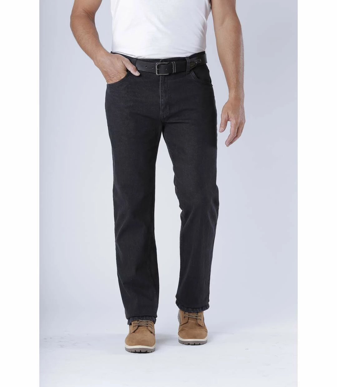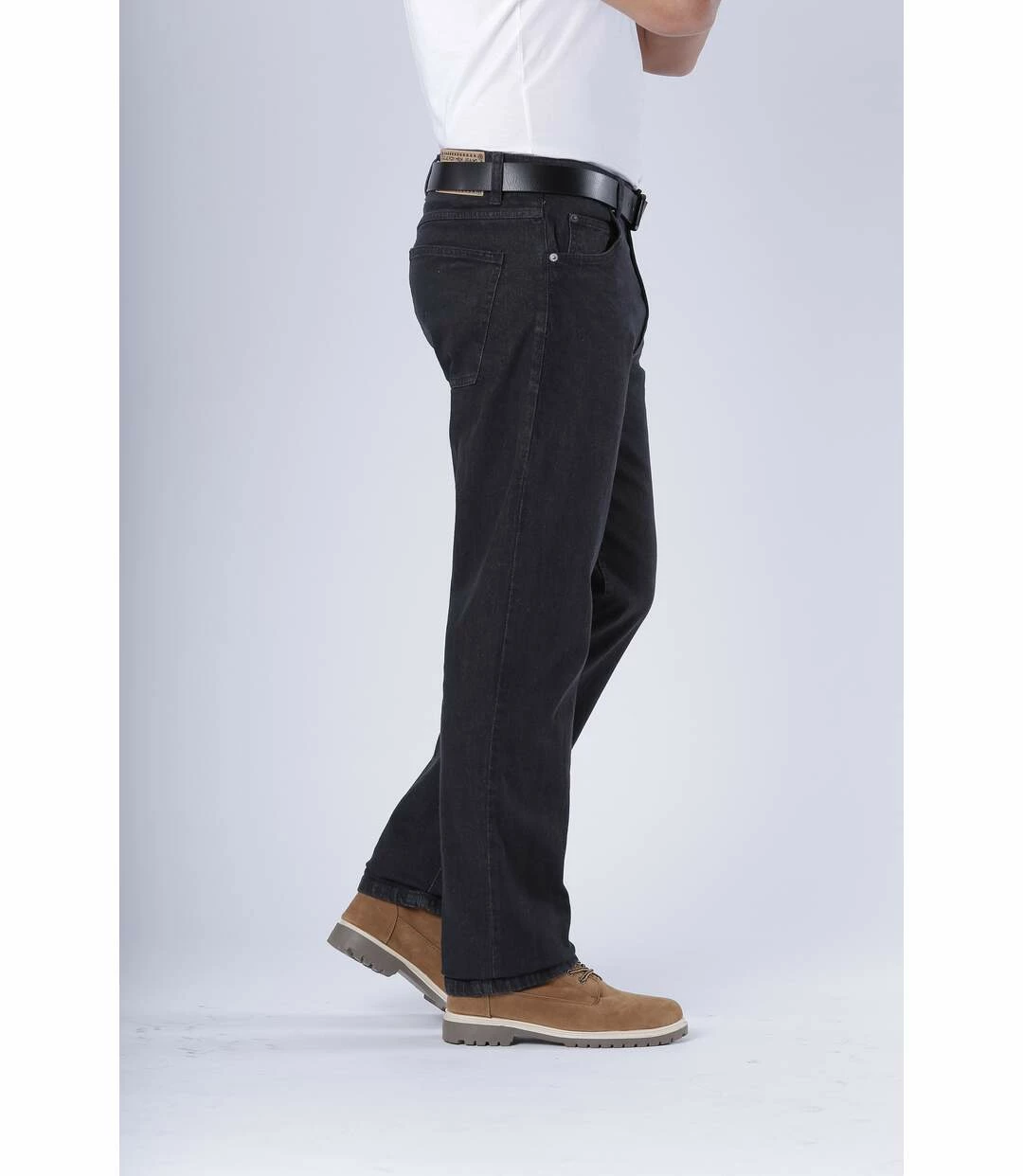 Schwarze Stretch-Jeans im Regular-Schnitt: Dieser Jeans-Klassiker aus solidem, leicht nachgebendem Denim (11 oz) ist gerade geschnitten und eignet sich dadurch für alle Figurtypen. Die strapazierfähige und bequeme Jeans verfügt über 2 Einstecktaschen und 1 Münztasche vorne und 2 aufgesetzte Gesäßtaschen. Bund mit Schlaufen und Reißverschluss inkl. Abschlussknopf aus Metall. Nähte Ton in Ton. Schrittlänge bei Größe 50: ca. 86 cm, Fußweite: ca. 21,5 cm. Maschinenwaschbar bei 30°. Farbe: Schwarz.