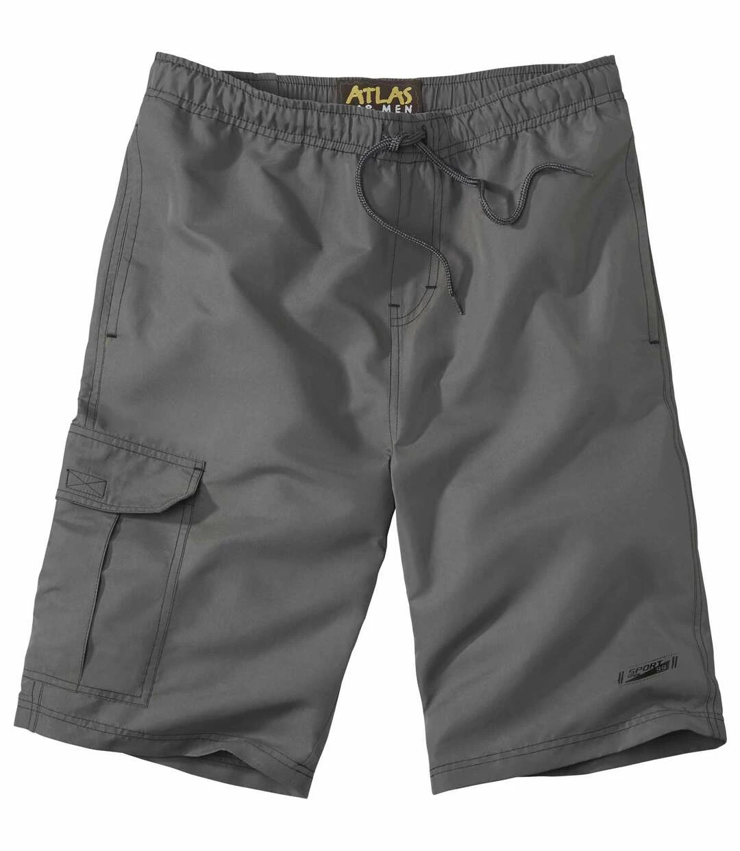 Sommerbermuda: Diese federleichte Bermuda aus Microfaser (ca. 110 g/m²) ist extrem schnell gewaschen und wieder trocken. Viele praktische Taschen: 2 Seitentaschen, 1 Cargotasche mit Klettklappe, 1 aufgesetzte Gesäßtasche. Elastikbund mit Verstellkordel. Angedeuteter Eingriff mit Ziernähten. Schrittlänge: ca. 30 cm, Beinweite: ca. 29 cm. 100% Polyester. Maschinenwaschbar bei 30°. Farbe: Grau – Art.-Nr.: P7037