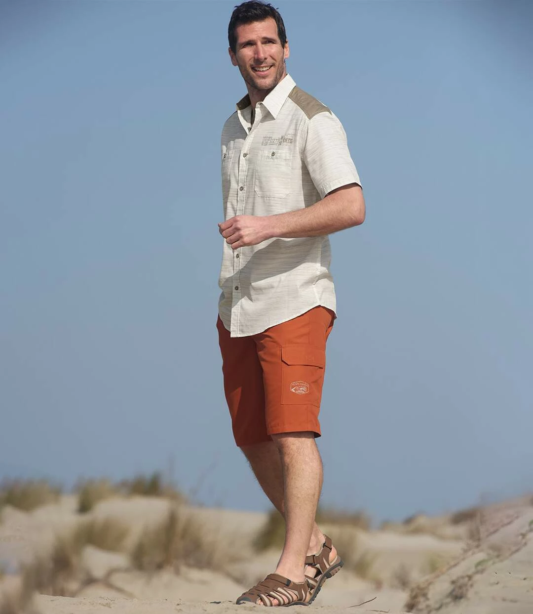 Sommerhemd Wüste aus geflammtem Popelin: Dieses Hemd aus weichem, geflammtem Popelin (ca. 110 g/m²) begeistert mit seinem Casual-Chic. Das luftige und leicht zu kombinierende Hemd unterscheidet sich durch viele Kontrastdetails: Schultereinsätze, Revers, Unterseite der Knopfleiste, Brustaufdruck. Wenn Sie einen dezenteren Stil bevorzugen, können Sie die Revers umschlagen. Perfekter, superbequemer Schnitt: Kentkragen, 2 geknöpfte Brusttaschen, 2 Bewegungsfalten im Rücken, abgerundeter Saum. Taupefarbene Knöpfe. Rückenlänge bei Größe L: ca. 80 cm. Maschinenwaschbar bei 30°. Farbe: Beige meliert.