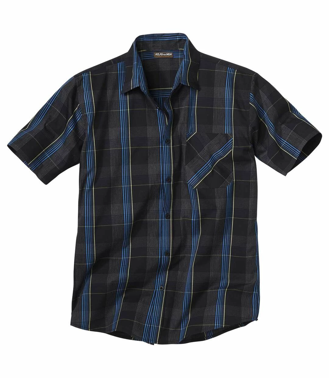 Sommerhemd: Dieses kurzärmelige Hemd mit Webkaros aus weichem, leichten Popelin (ca. 110 g/m²) gehört unbedingt ins Urlaubsgepäck, denn Sie können es sowohl lässig als auch etwas eleganter tragen, je nach Anlass. Dank des weiten Schnitts und des Elasthananteils ist dieses Modell sehr bequem. Kentkragen, 2 Bewegungsfalten im Rücken, abgerundeter Saum. 72% Baumwolle, 25% Polyester, 3% Elasthan. Rückenlänge bei Größe L: ca. 80 cm. Maschinenwaschbar bei 30°. Farben: Schwarz mit Karos – Art.-Nr.: D0114
