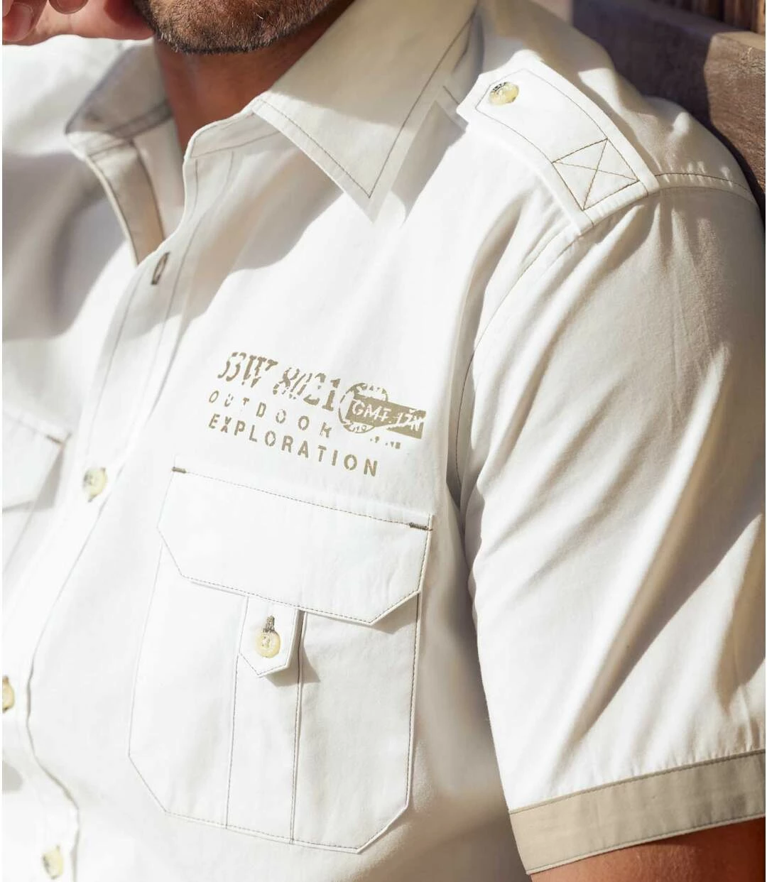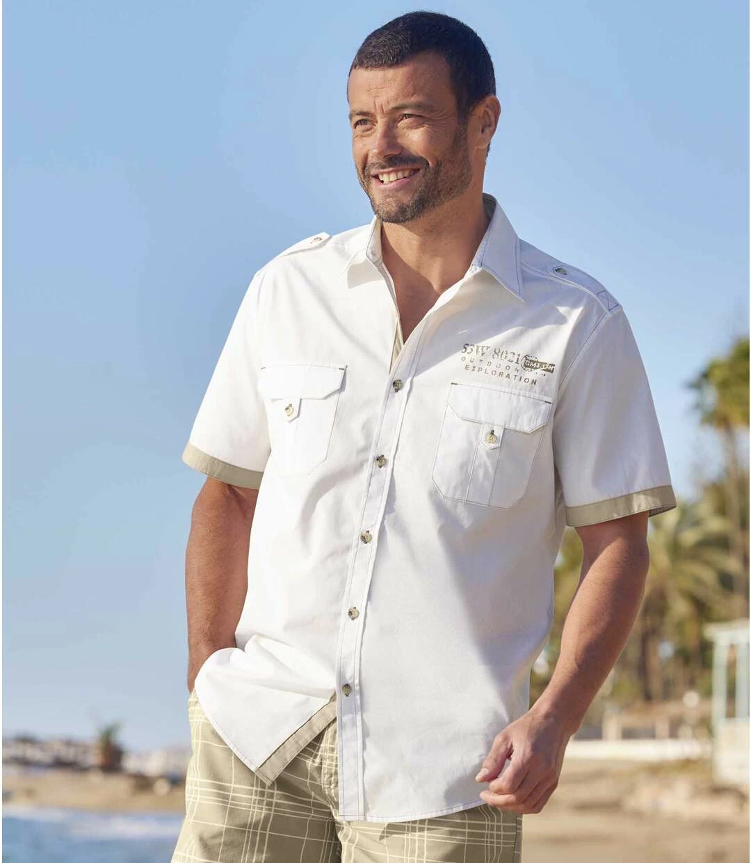 Weißes Hemd im Pilotenstil: Zeigen Sie lässige Eleganz mit diesem weißen Hemd aus weichem Popelin (ca. 120 g/m²)! Der Stil erinnert an Pilotenhemden: geknöpfte Schulterklappen, 2 Brusttaschen mit Knopfklappen. Zusätzliche Akzente setzen beige Kontrastdetails (Krageninnenseite, Unterseite der Knopfleiste, Ärmelsaum, Brustaufdruck). Kentkragen, Rückenpasse mit 2 Bewegungsfalten, abgerundeter Saum. Knöpfe in Hornoptik. Taupefarbene Nähte. 100% Baumwolle. Rückenlänge bei Größe L: ca. 80 cm. Maschinenwaschbar bei 30°. Farbe: Weiß.